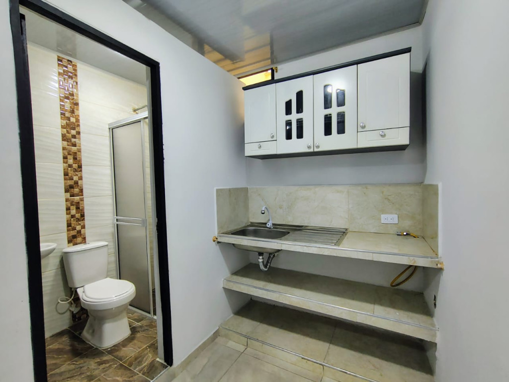 Gespron alquila aparta estudio en segundo piso, ubicado en el barrio el jardín. Consta de una habitación con closet, cocina tradicional con mueble inferior y mesón inferior sin puertas, conexión a gas natural, sin estufa, zona de ropas con lavadero, tendedero y conexión para lavadora, un baño completo con división en acrílico, los servicios de agua, luz, gas están incluidos en canon de arrendamiento, sin parqueadero. El sector es residencial, tranquilo rodeado de parques, estaciones de gasolina, comercio en general, cerca al supermercado el jardín, galería de Santa Elena y Comfandi el prado, cómodas vías y cercanía con la autopista sur oriental, calle 25 las cuales facilitan el acceso a transporte publico.
