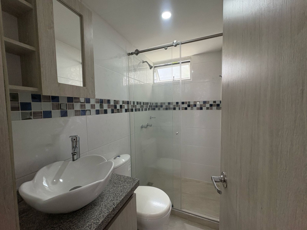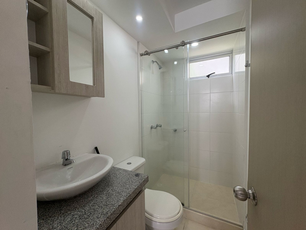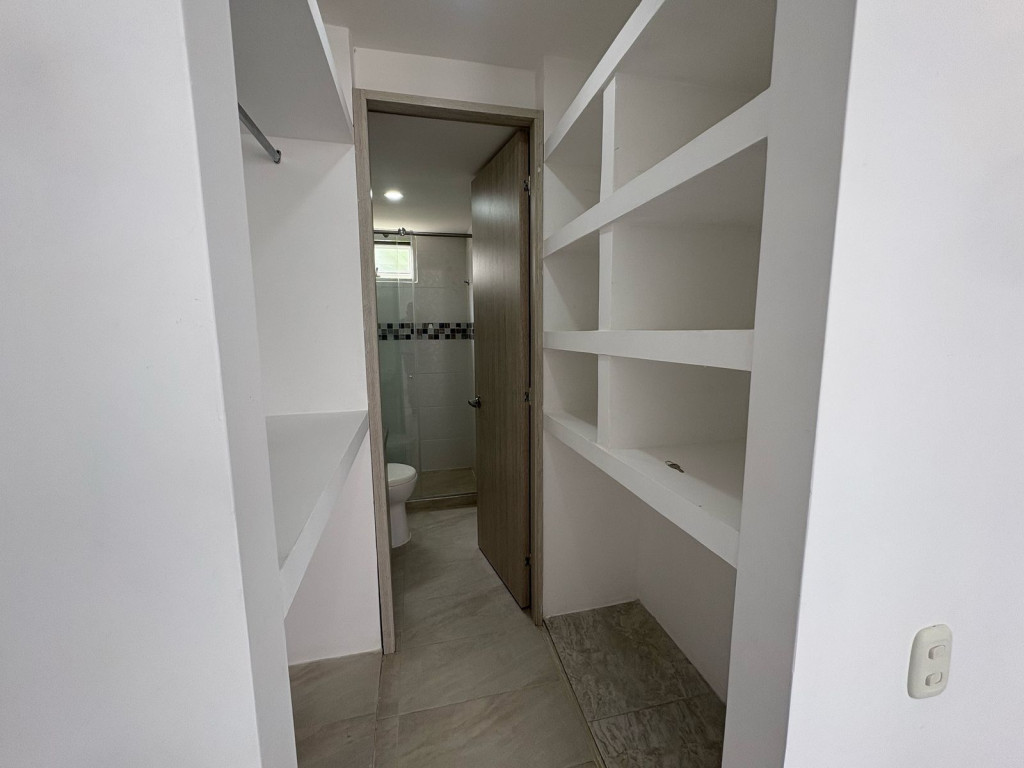 Gespron alquila hermoso apartamento en Bochalema, Conjunto Residencial Canelo, primer piso, consta de sala comedor amplio e iluminado con luces led empotradas en techo, estudio con pared organizadora, techo en panel con lámparas empotradas, dos habitaciones con closet, la principal con baño con divisiones en vidrio templado, baño social completo con muebles y espejos, cocina integral con extractor de olores , mesón para comedor tipo americano, zona de oficios con lavadero con cajón, instalación para lavadora. El conjunto cuenta con piscina para adultos y niños, salón social , zona de mascotas , zona infantil, vigilancia privada, parqueadero comunitario, parqueadero para visitantes externo
