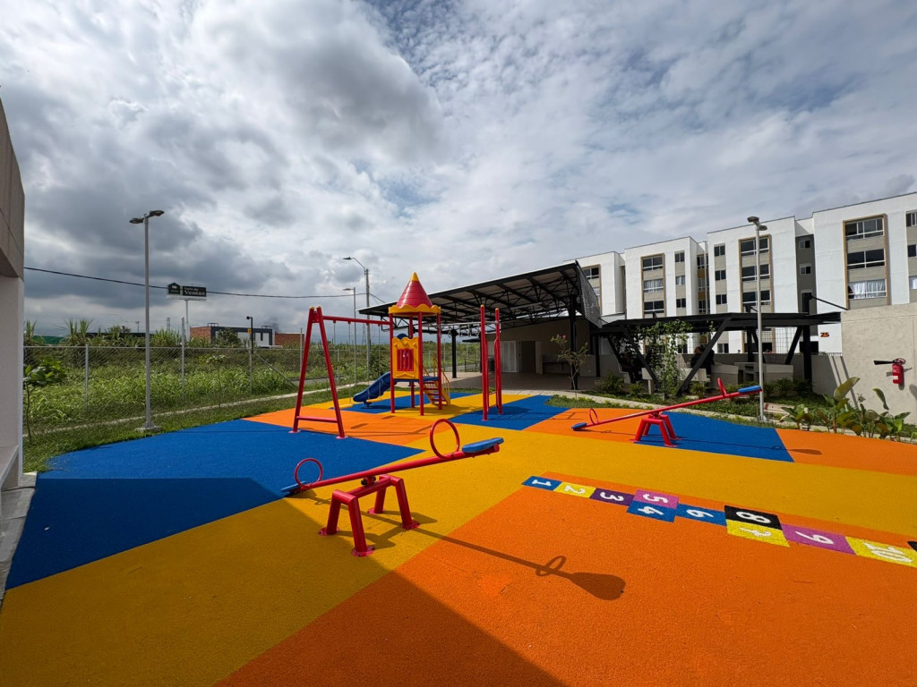 El conjunto cuenta con piscina para adultos y niños, zona de juegos infantiles, sala de estudio, zonas verdes y parqueadero comunitario.