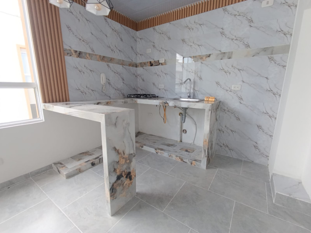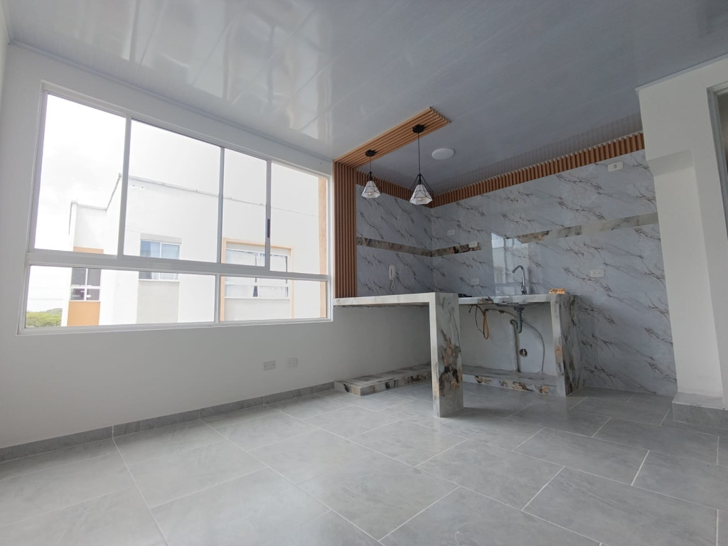 Cuenta con una sala comedor amplia y aireada, cocina tradicional, dos habitaciones con buen espacio, baño social sin división en vidrio, zona de ropas con lavadero independiente y punto de instalación para lavadora.